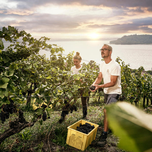 Tradition und Innovation gehen bei uns Hand in Hand – wie bei einer ausgewogenen Assemblage ergänzen sich Bewährtes und Neues gegenseitig. Mit Arielle und Beni führt bereits die fünfte Generation das Weingut in Schafis am Bielersee und verbindet traditionelles Winzerhandwerk mit neuen Ideen. Wir arbeiten eng mit der Natur zusammen und setzen deshalb komplett auf einen biologischen Anbau. Unser Ziel: Lebendige Weine mit Charakter, die dem einzigartigen Terroir am Jurasüdfuss gerecht werden. Unser Credo: Möglichst wenig in die Natur eingreifen, um das Beste aus unseren Weinen herauszuholen. Weine, die in hochwertigen Eichenholzfässern der Küferei Suppiger gereift sind. – für Qualität im Glas. Santé!